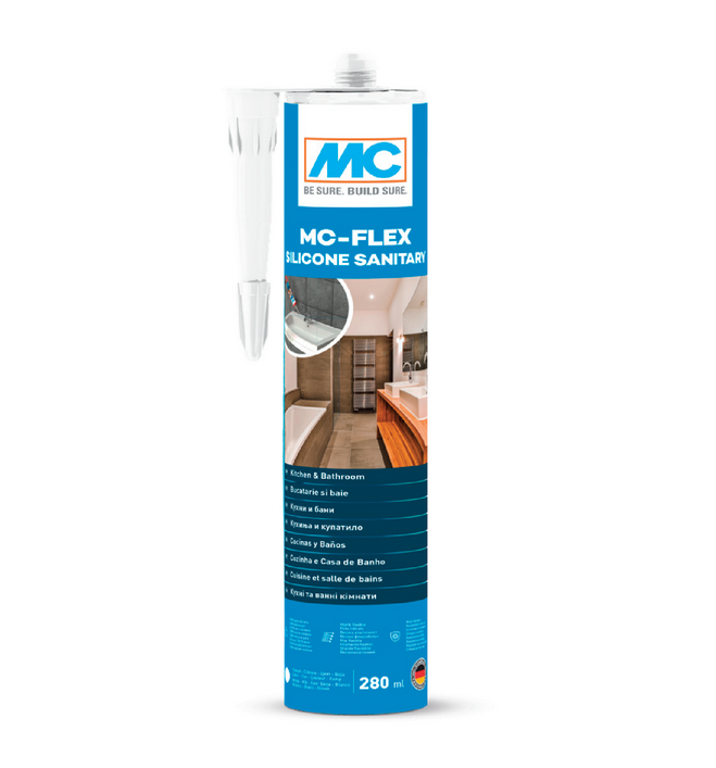 Siliconul Sanitar Alb MC-FLEX este un sigilant elastic pentru umplerea rosturilor de dilatare si imbinarilor de orice fel in bai si bucatarii. Acesta este rezistent la apa fiarta, radiatii UV, diferiti acizi si la majoritatea detergentilor obisnuiti de curatare.
